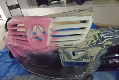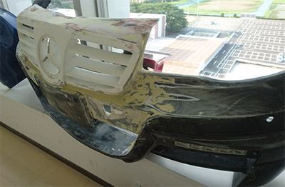 FRP bumpers and aftermarket-OEM-bent grills.
