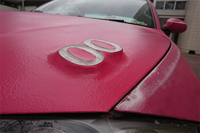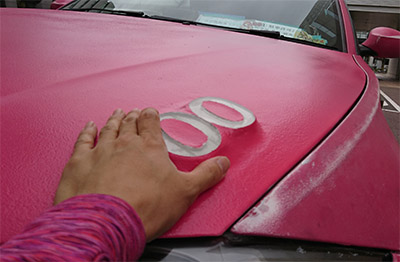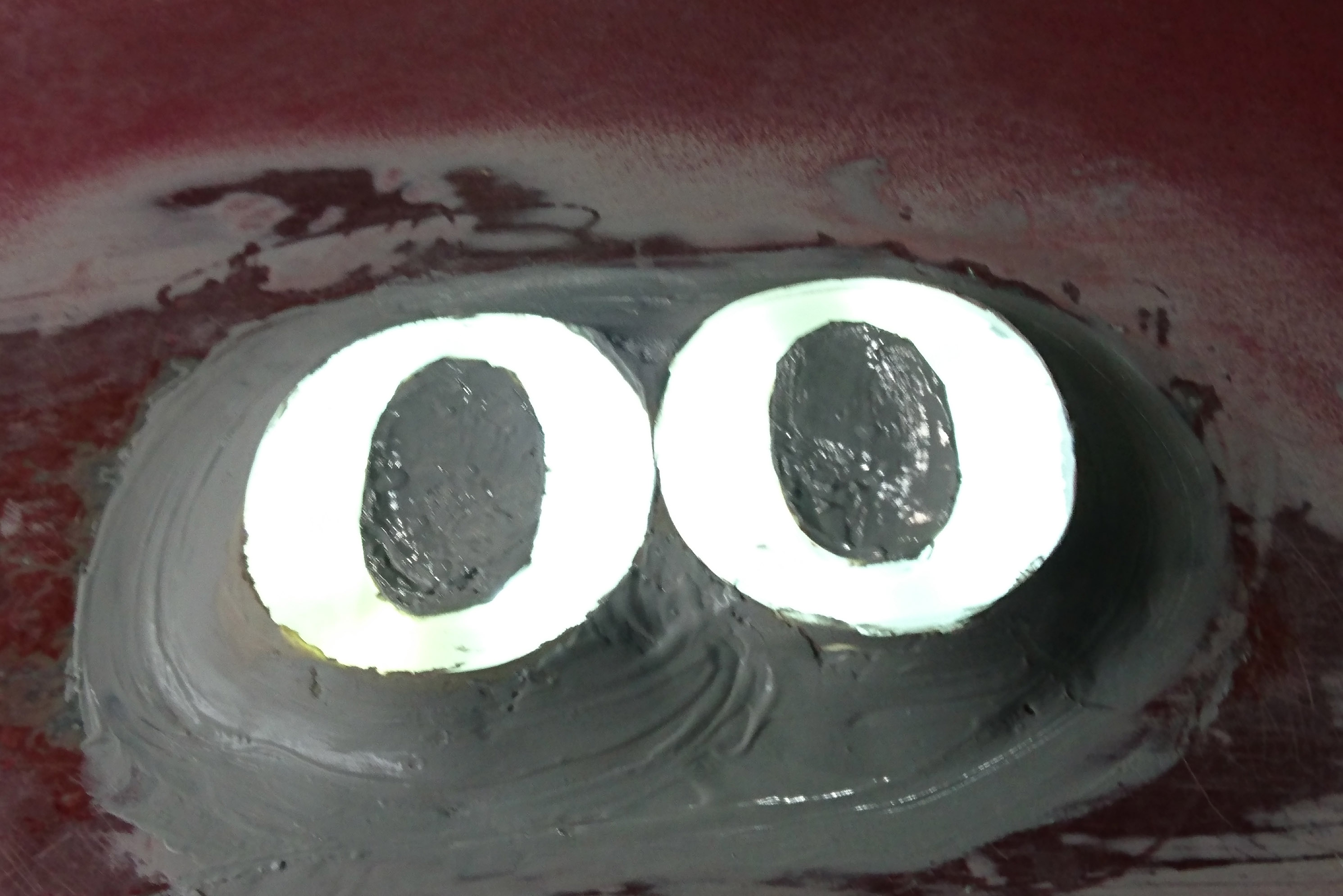 LEDs and acrylic letters are attached onto hood with filler.