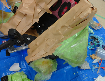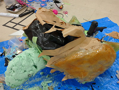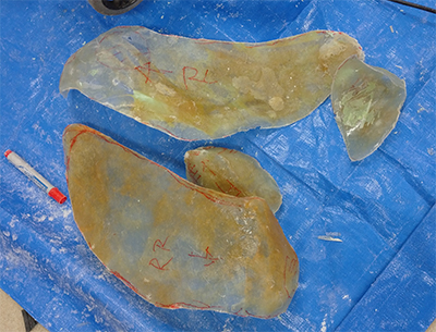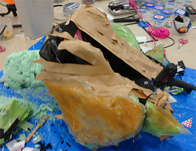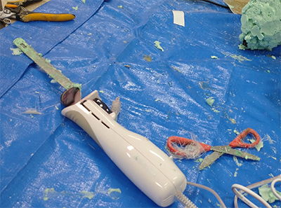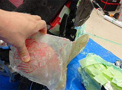 3D hand-modeling, FRP makes, and covering with polyurethane sheet
