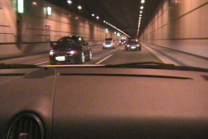 湾岸にのぼる道。あたりまえですが前も後ろもポルシェだらけ!興奮しますね!