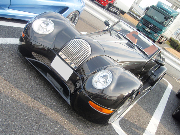 しかし!今日一番目立っていたのはこのクルマでした。Morgan。サイドステップ?で滑り台が出来そうです。