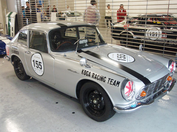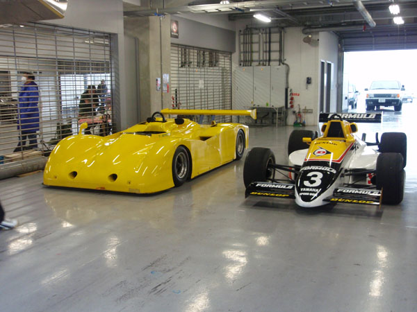 当日は昔のレーシングカーや市販車がサーキットランしていました。ピットで間近にクルマを見ることができます。
