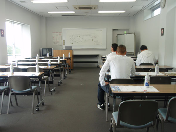 最初は坐学です。場所は富士スピードウエィのショートコースです。