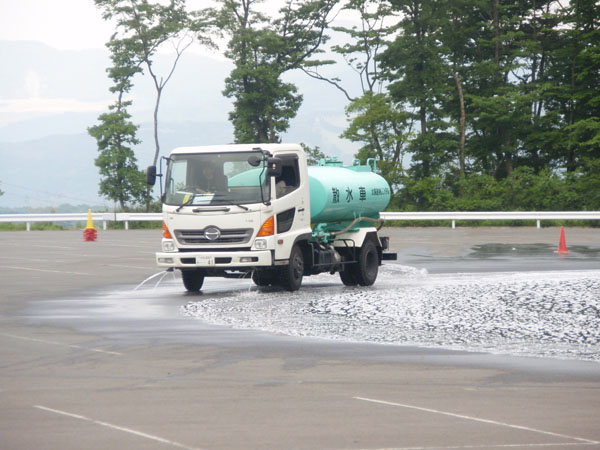 今度は散水車が登場して、駐車場で定常円です。