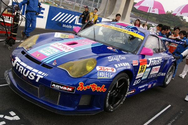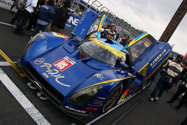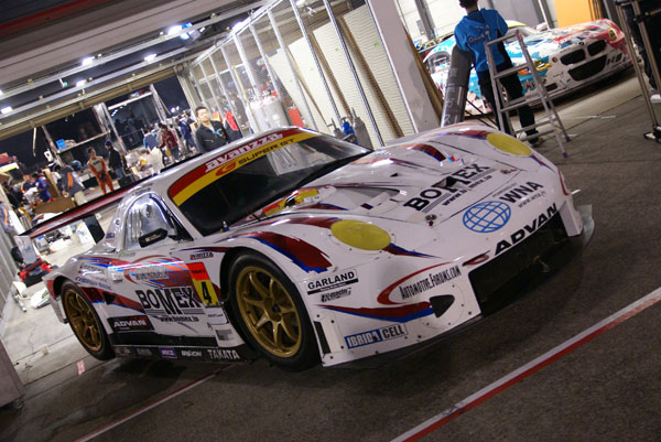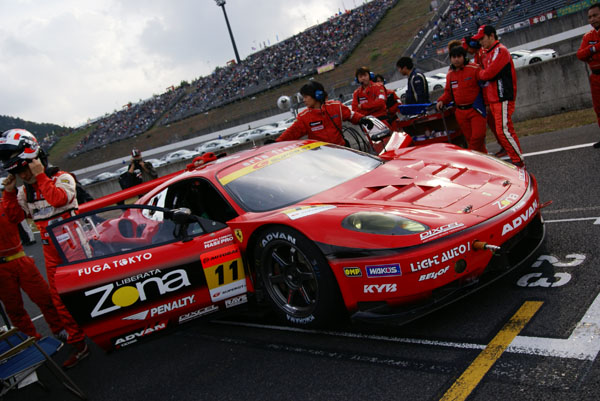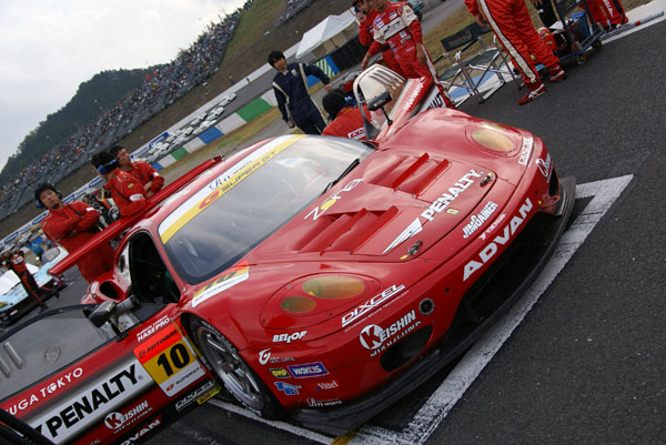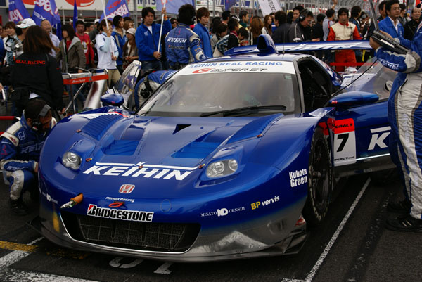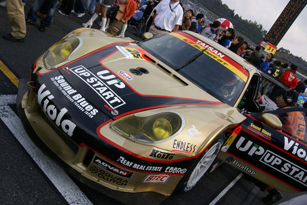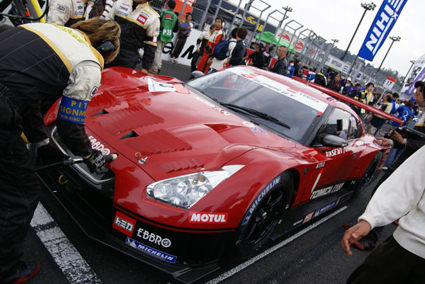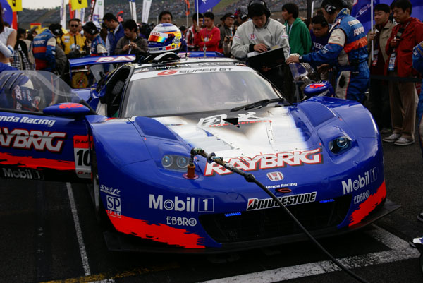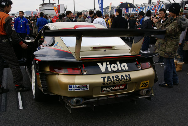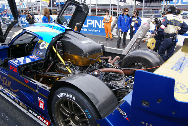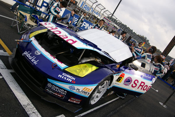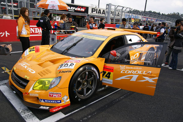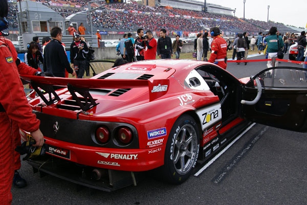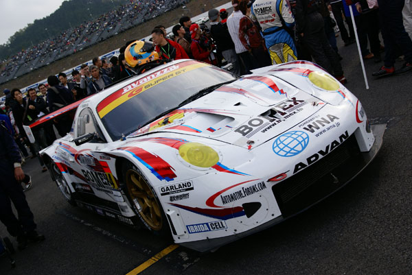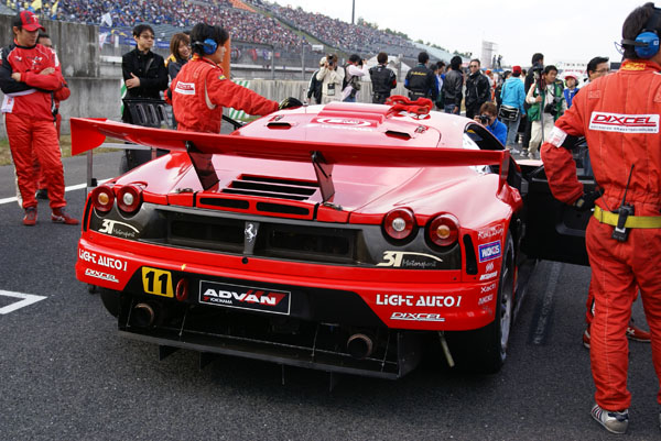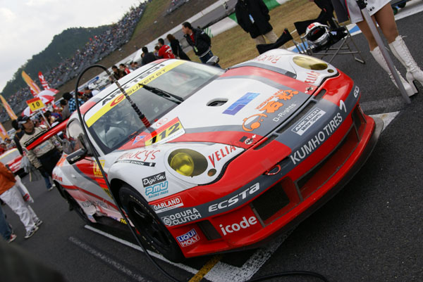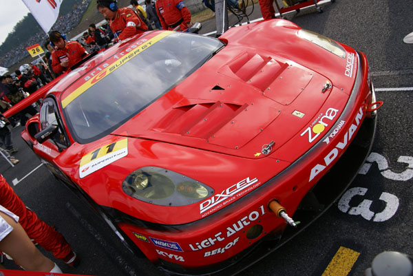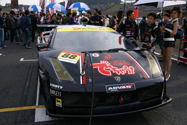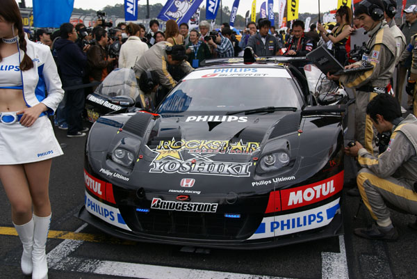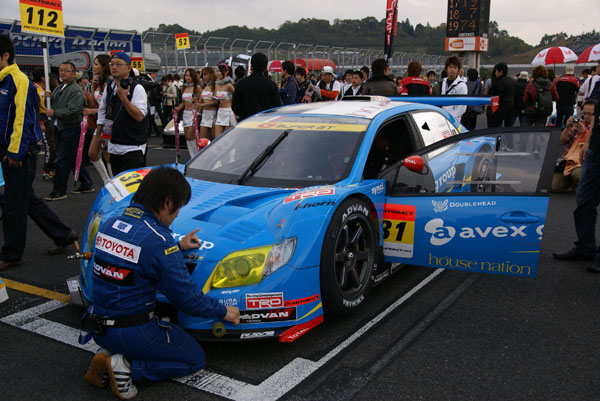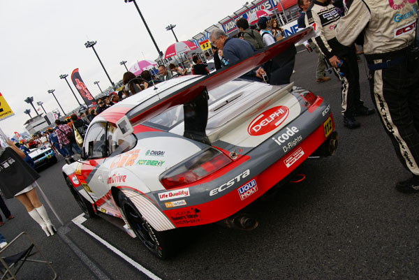 グリッドに並ぶとクルマに人がむらがります。