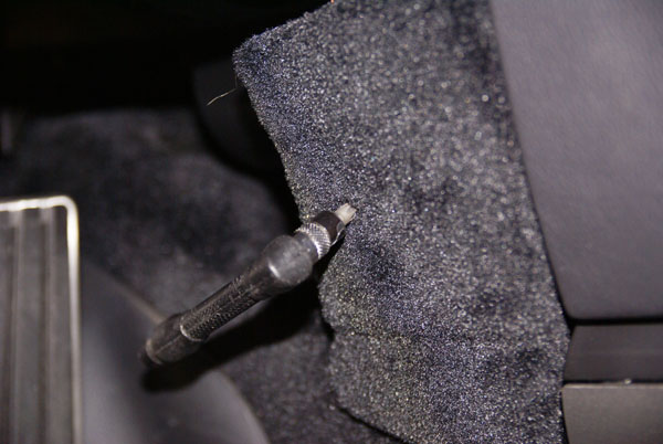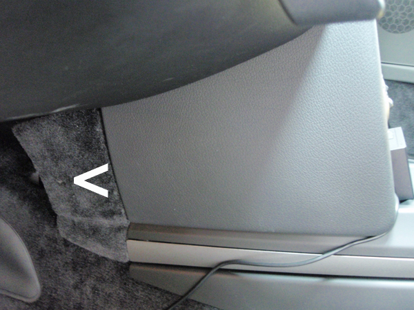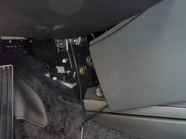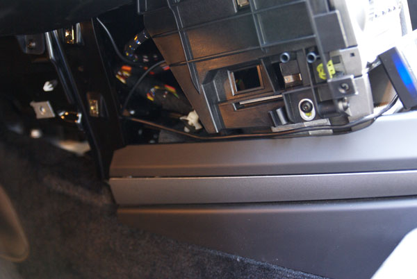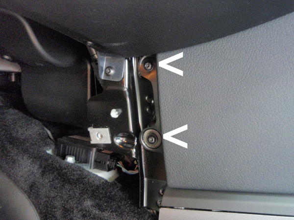 運転席右下のパネル、および、センターコンソール左側のパネルを外します。