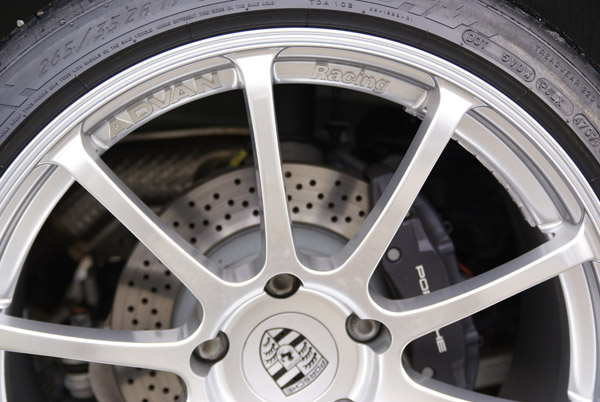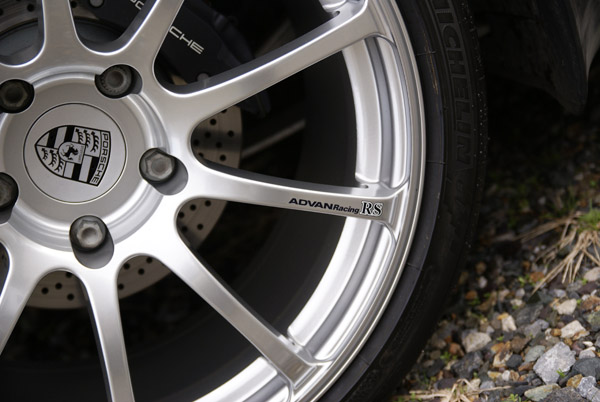 ホイールはAdvan RS for Porsche。タイヤはN指定のミシュランのPilot