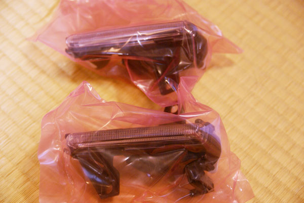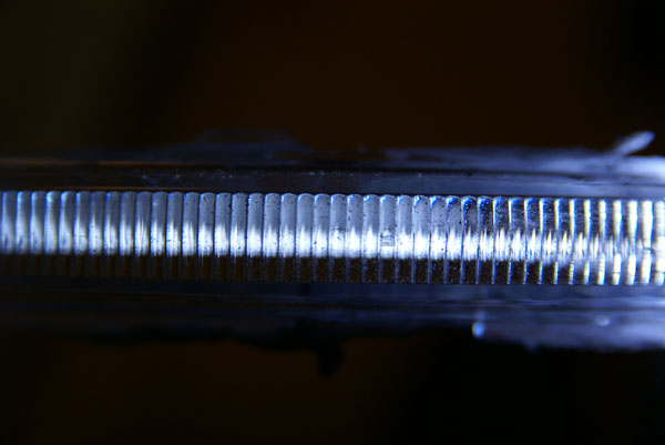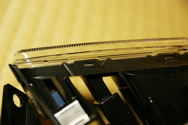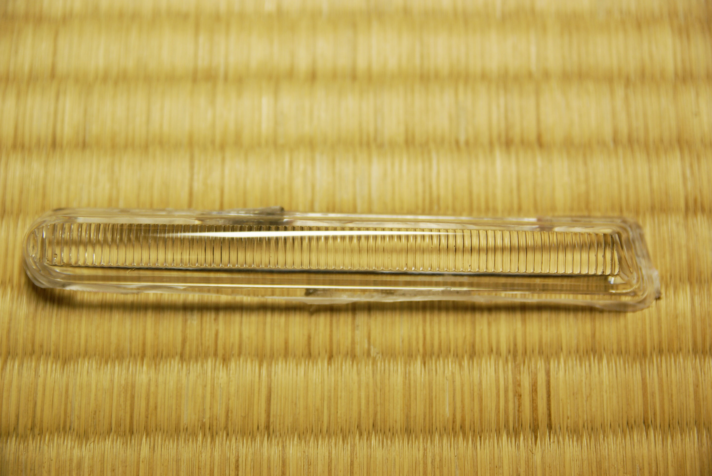 裏側からみると微妙にギザギザが左右で違うことに気づきます。均等に光らせる工夫です。