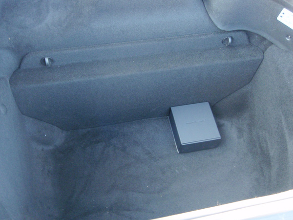 フロントトランクのカーペットに付けます。これで走っていてもなかで暴れることはありません。