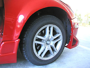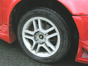 検査時はホイールキャップは外します。構造変更時に重さを量るのでスペアタイヤやジャッキは降ろしておきます。