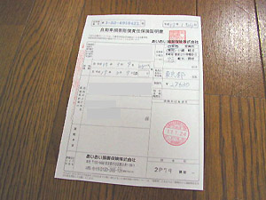 なお、車検時に有効な自賠責、及びその後2年間有効な自賠責、の両方(つまり旧と新)の証明書が必要になります。