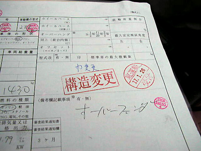 ワイドボディ化したための構造変更(いわゆる公認取得)とユーザー車検を行いました。