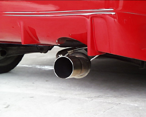 排気ガスのCO,HC濃度を測ります。マフラーにプローブを差し込みます。