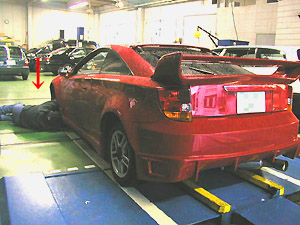 次に、リヤをローラーにのせフットブレーキ、サイドブレーキも同様にテストします。